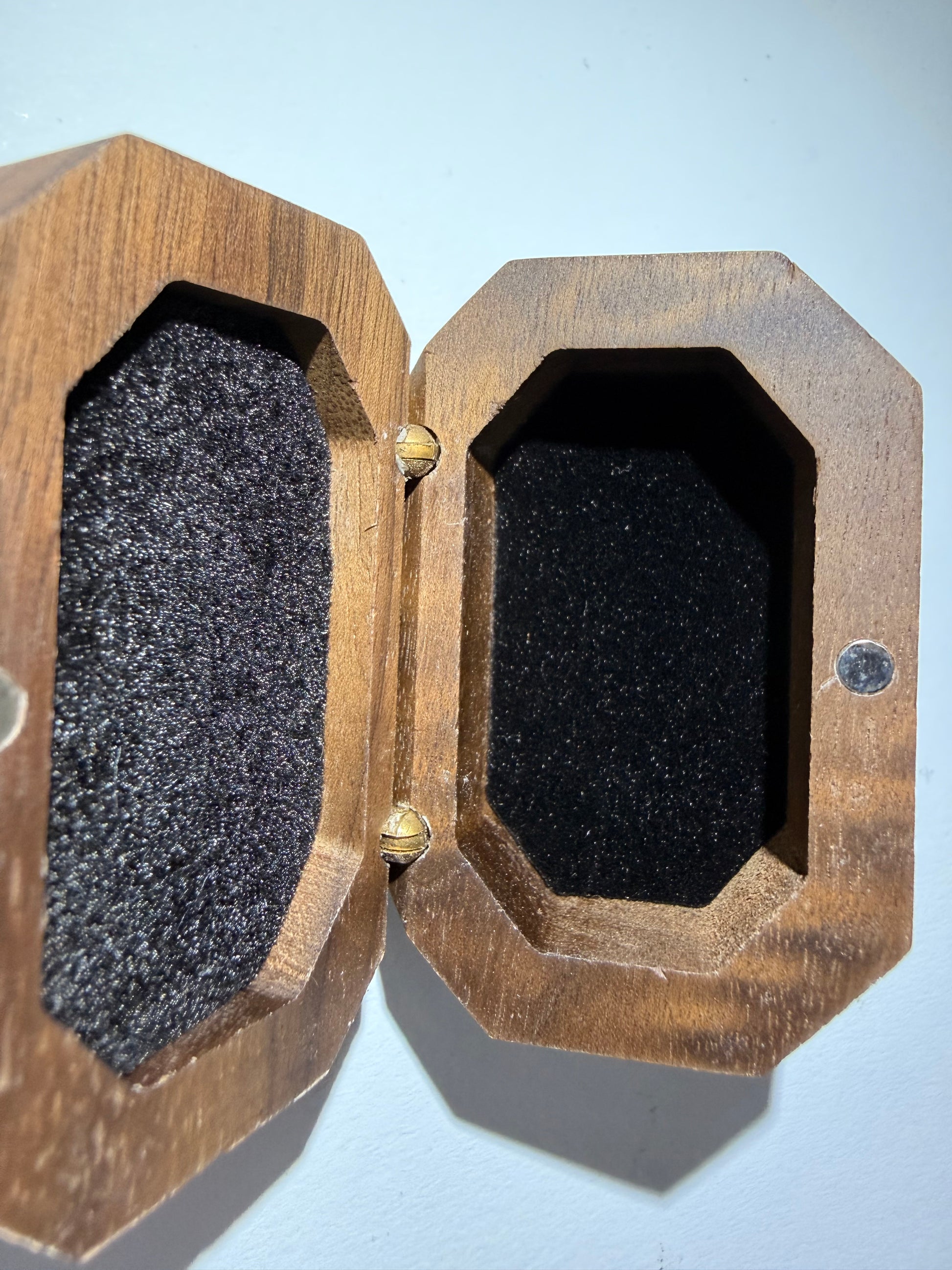 Die Box ist gefüttert und hat bereits einen Schlitz um Ringe hinein zu stecken.