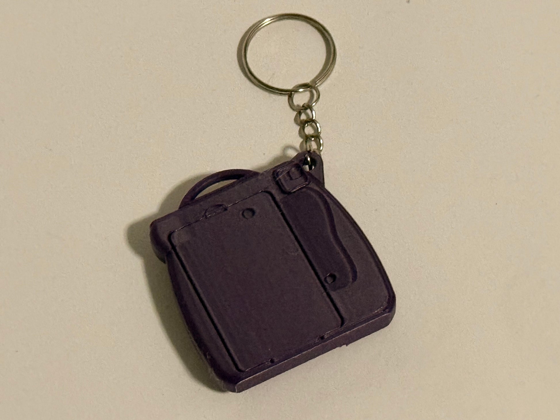 Das Foto kann wie ein Foto einer Sofortbildkamera aus dem Schlüsselanhänger gezogen werden.