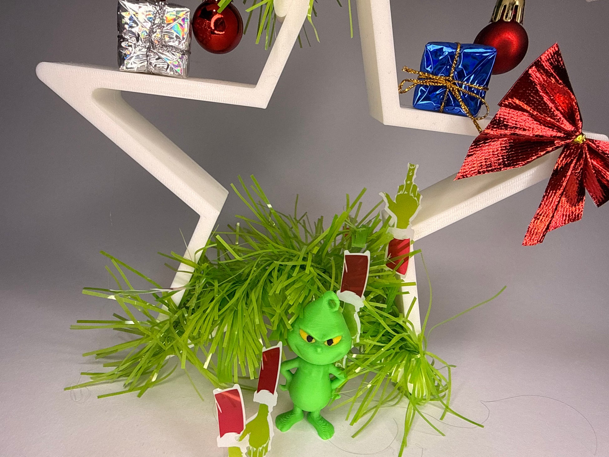 Diese Kombination aus Sternen im Grinch Stil bietet Dekoration auf unterschiedlichen Ebenen
